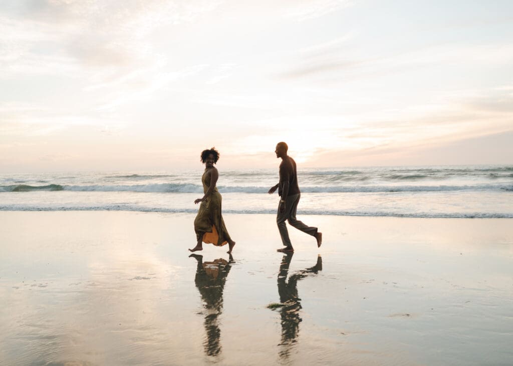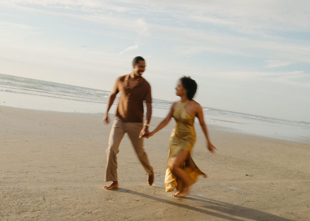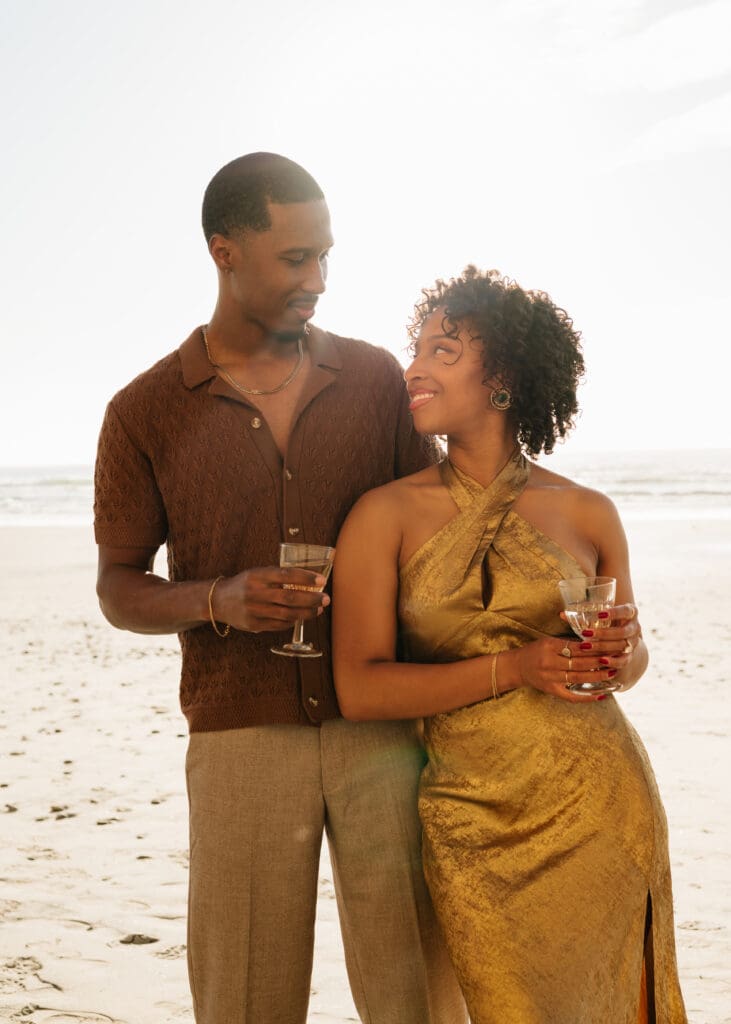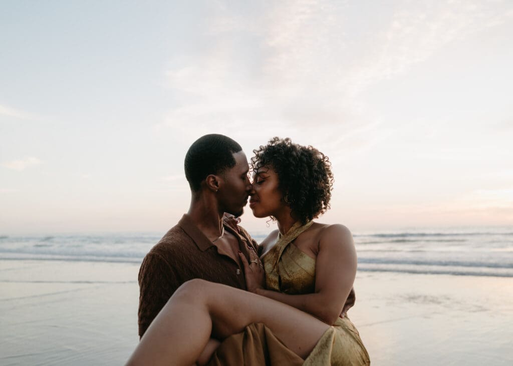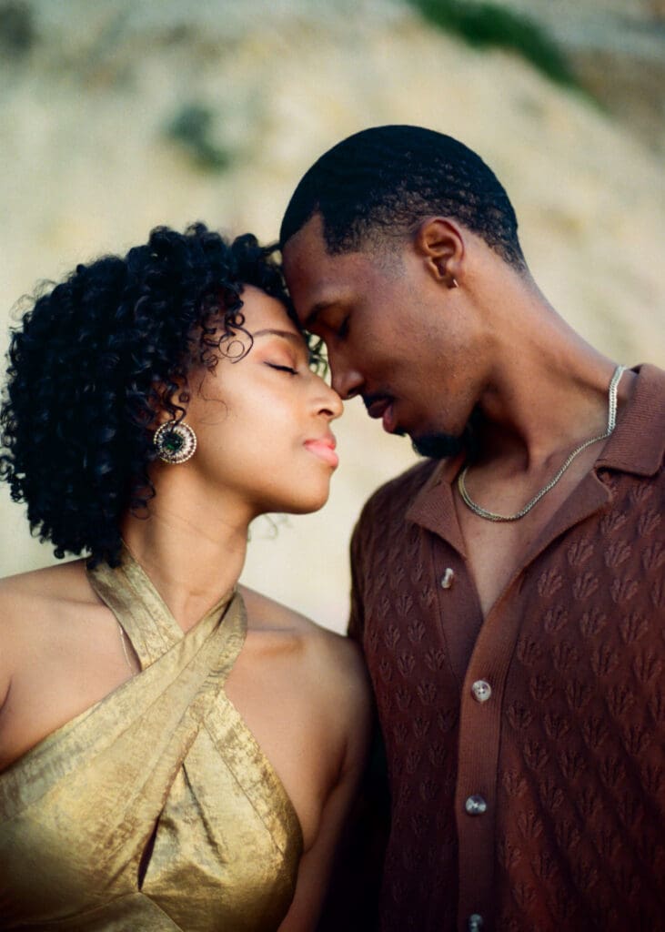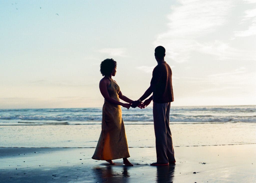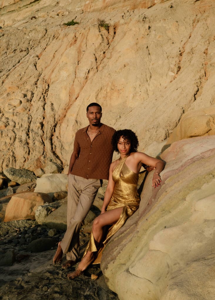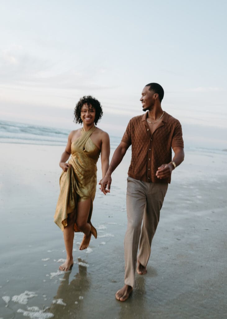 Outfits are another part of planning that couples sometimes feel unsure about, and I’m always happy to help with this part of the process. Send photos, text options, ask questions I’m an open book when it comes to styling help. For sessions in nature, like an engagement session at Torrey Pines or other outdoor spots around San Diego, I usually recommend classic and muted colors. Blacks, whites, creams, browns, grays, and soft neutral tones photograph beautifully and keep the focus on the connection between the two of you.